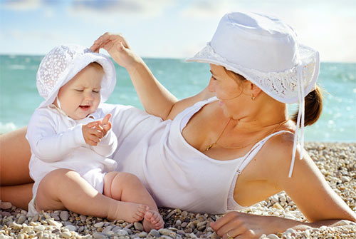 Солнце полезно для малышей, но оно может и навредить: в полуденные пики жары следует укрыться с ребенком в тени или в помещении, всегда пользуйтесь головными уборами. Важно защитить малыша от теплового удара!