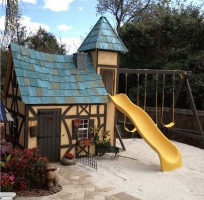 Такой домик может быть одновременнои игровым комплексом.