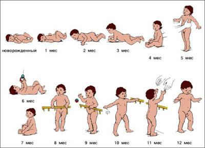 - В 10—11 месяцев самостоятельно стоит, а к году или несколько раньше овладевает самостоятельной ходьбой.